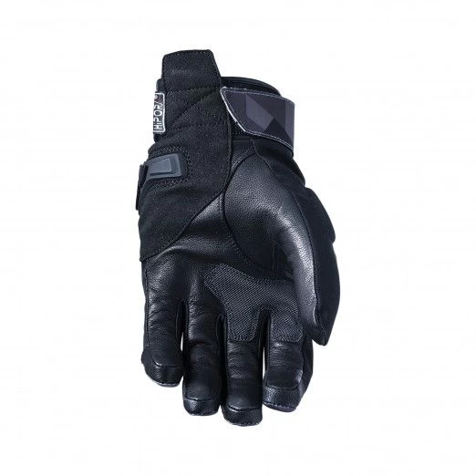 Handschoen met waterproof directlaminaat Outdry membraan en waterafstotende stretch textiel constructie met geitenleer in de palm.