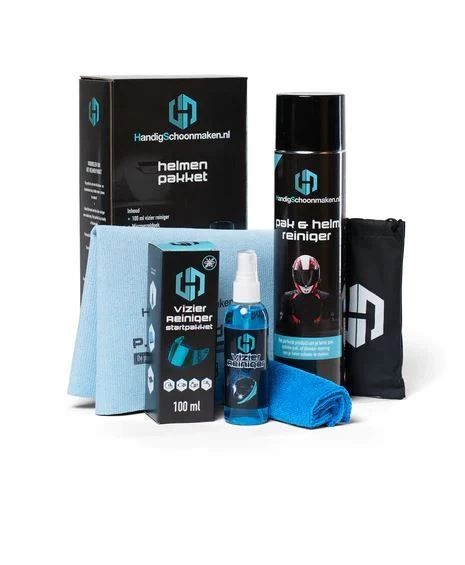 Na warme zweterige zomerdagen met je helm op kan het geen kwaad om de helm van binnen te reinigen. De haargel, make-up en huidvetten die in de binnenvoering gaan zitten zijn eenvoudig te verwijderen met deze set. Met de helm-reinigingsset zorg je dat dit in no time weer fris is. Het reinigen van de helm is fijn voor het comfort. Daarnaast is het reinigen van het vizier onmisbaar voor de veiligheid. De vizier-reinigingsset krijg je er daarom bij. Een schoon vizier voor prachtig zicht. Alles voor je helm in één set.