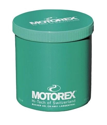 Ervaring in onze werkplaats leert dat met de witte Motorex kettingvet preciezer gesmeerd kan worden en het resultaat uitstekend is. Smeren wordt gedaan met een (niet bijgeleverde) kwast. De geleverde pot is 850 gram en kan vele smeerbeurten mee.