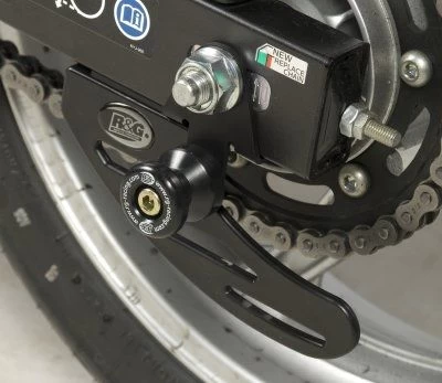 Wanneer er geen schroefdraad in de achterbrug is om een bobbin te monteren kan de R&G “Offset Cotton Reels” gebruikt worden. Zo kan er via de kettingspanner/achteras toch een bobbin op de motor gemonteerd worden en kan de motor dus met een paddockstand veilig en stevig gestald worden. Ook beschermen de bobbins de achterbrug bij een val.